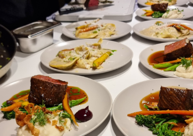 Zu den verschiedenen Sekten unserer Spitzenwinzer servieren wir Ihnen als Flying Buffet allerlei Leckereien als Amuse Bouche. Danach werden unsere Köche aus den 3 Küchen des LOFTWERKs, jeweils zur vollen Stunde, 3 Gänge anrichten. Über den gesamten Abend 9 feine regionale und internationale Gerichte incl. Käse- und Dessertbuffet aus den frischen Topprodukten des Frischeparadieses! Die Weiß-, Rosé- und Rotweine unserer sechs Winzer ergänzen sich perfekt zu den Gerichten.