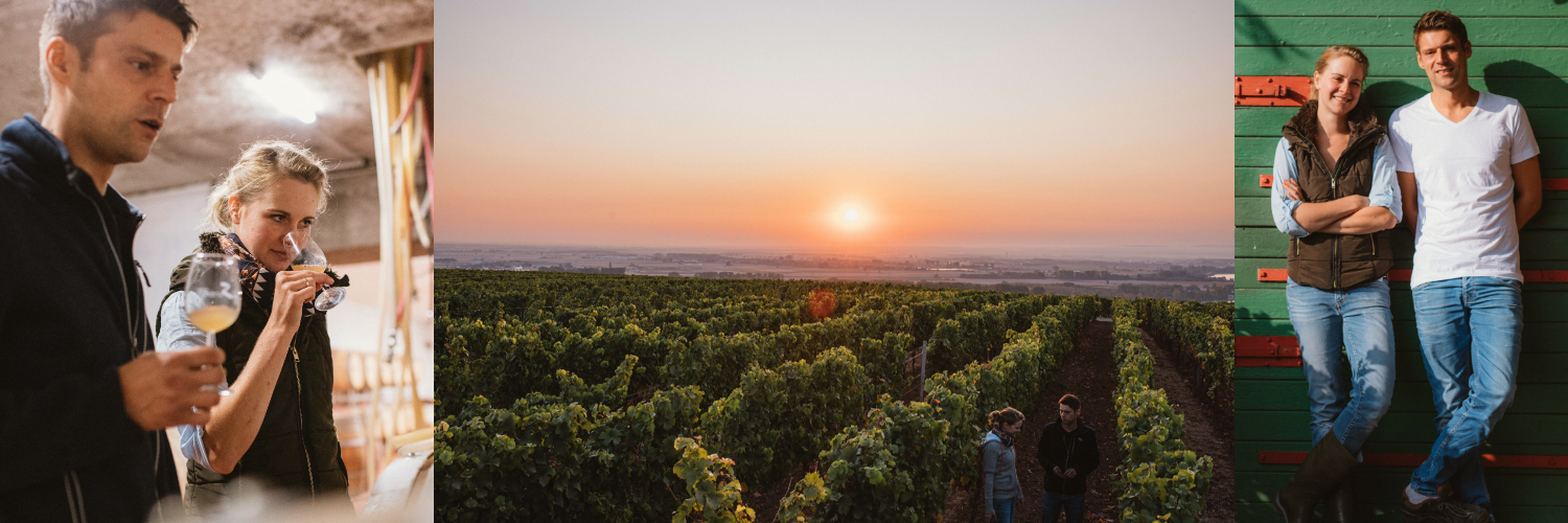 Wir sind ein junges Weingut mit tiefen Wurzeln – Bastian und ich haben unsere Heimatweingüter zusammengebracht. Damit haben wir ein Weingut mit zwei unterschiedlichen Terroirs: Nierstein – der Rote Hang – perfekt für Riesling und in Wintersheim – kühler Kalksteinboden – perfekt für die Burgunder. Als handwerkliches Bioweingut haben uns auf Riesling und Spätburgunder spezialisiert. Unser Stil ist einfach zu beschreiben: 100 % trocken, im Holzfass ausgebaut und mineralisch durch unsere besonderen Böden.